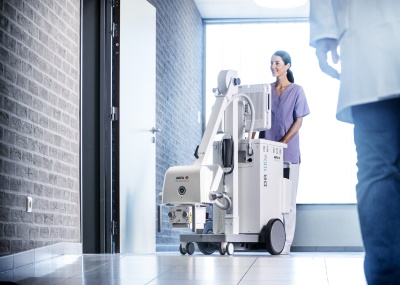 Kompaktní mobilní RTG systém DR 100e má obrovskou výhodu v nízké hmotnosti a snadné manévrovatelnosti. K dispozici je jak se sloupem pevným, tak s otočným. Ve spojení s digitálním detektorem zaručuje excelentní kvalitu snímků. Je vhodný všude tam, kde jsou ostatní rentgeny příliš velké a těžké.